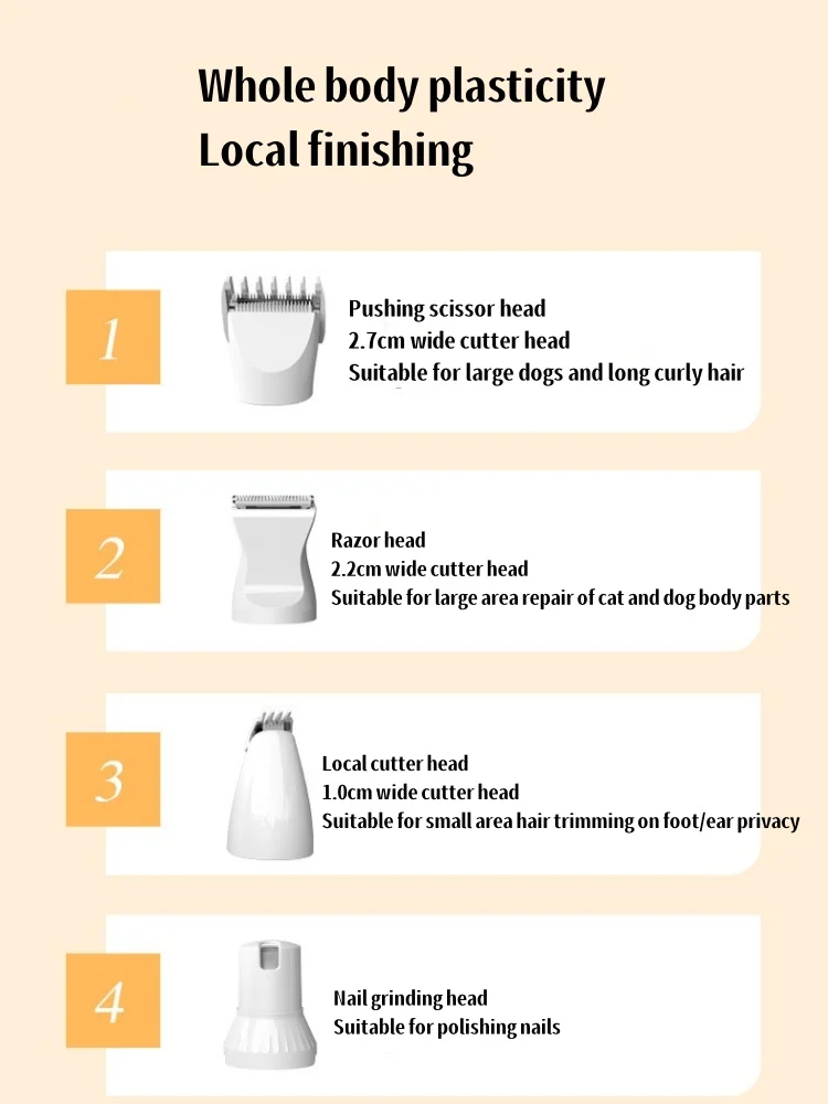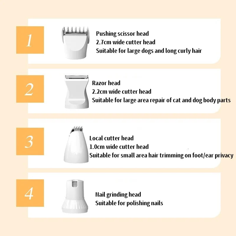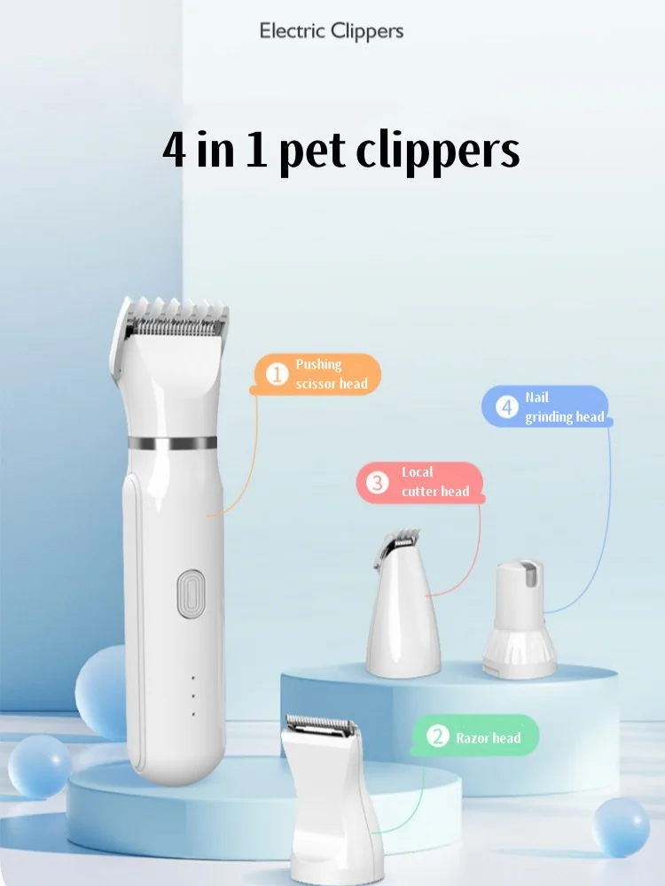 4in1 Pet Grooming Kit Professional Pet Hair Clipper Kit Electric Trimmer for Dog Grooming Low Noise Rechargeable Pusher Nails