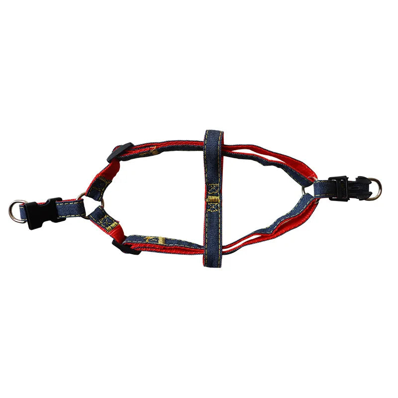 Item:Denim Dog Collar Harness Set, Pet Accessories, Puppy and Cat Collar, Chest Strap, Pug Vest, Outdoor Walking Lead Leash