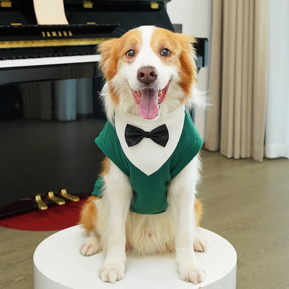 Large Dogs Tuxedo Wedding Costume Winter Warm Plush Dog Sweater Coat Suit with Bowtie for Male Dogs Pet Party Dress Up Supplies