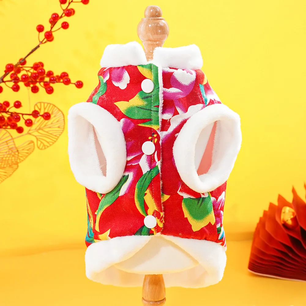 New Year Dog Dragon Robe Winter Warm Cat Cheongsam Pet Clothe Vest of The Tang Dynasty Christmas Coat for Cats Teddy Bichon Dogs