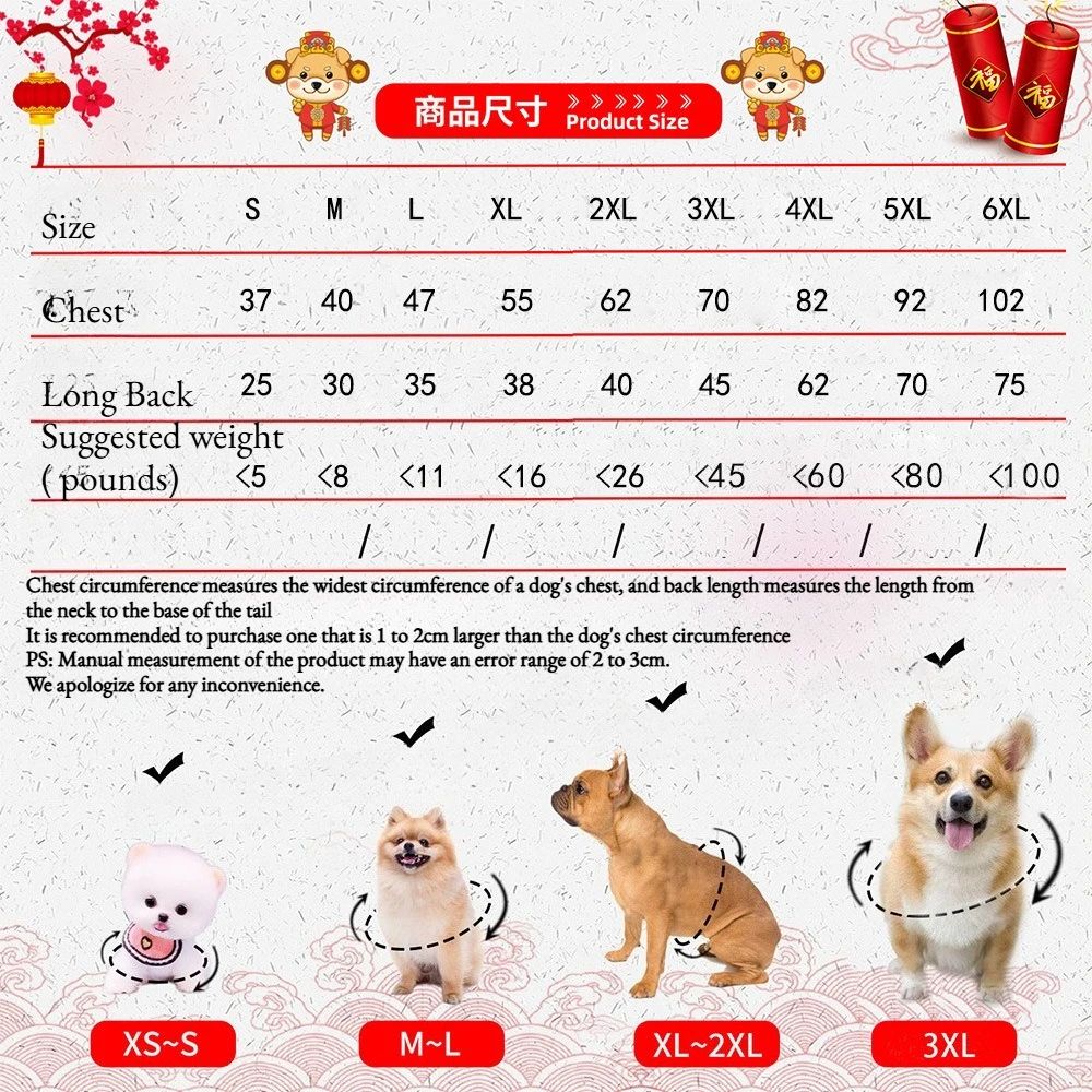【New Year Theme】Everyone wears festive new clothes during the New Year in China. Wear it on important occasions like family gatherings, weddings, holiday parties and more. Give your pet friend a New Year coat as a New Year gift and enjoy the happy New Year times!