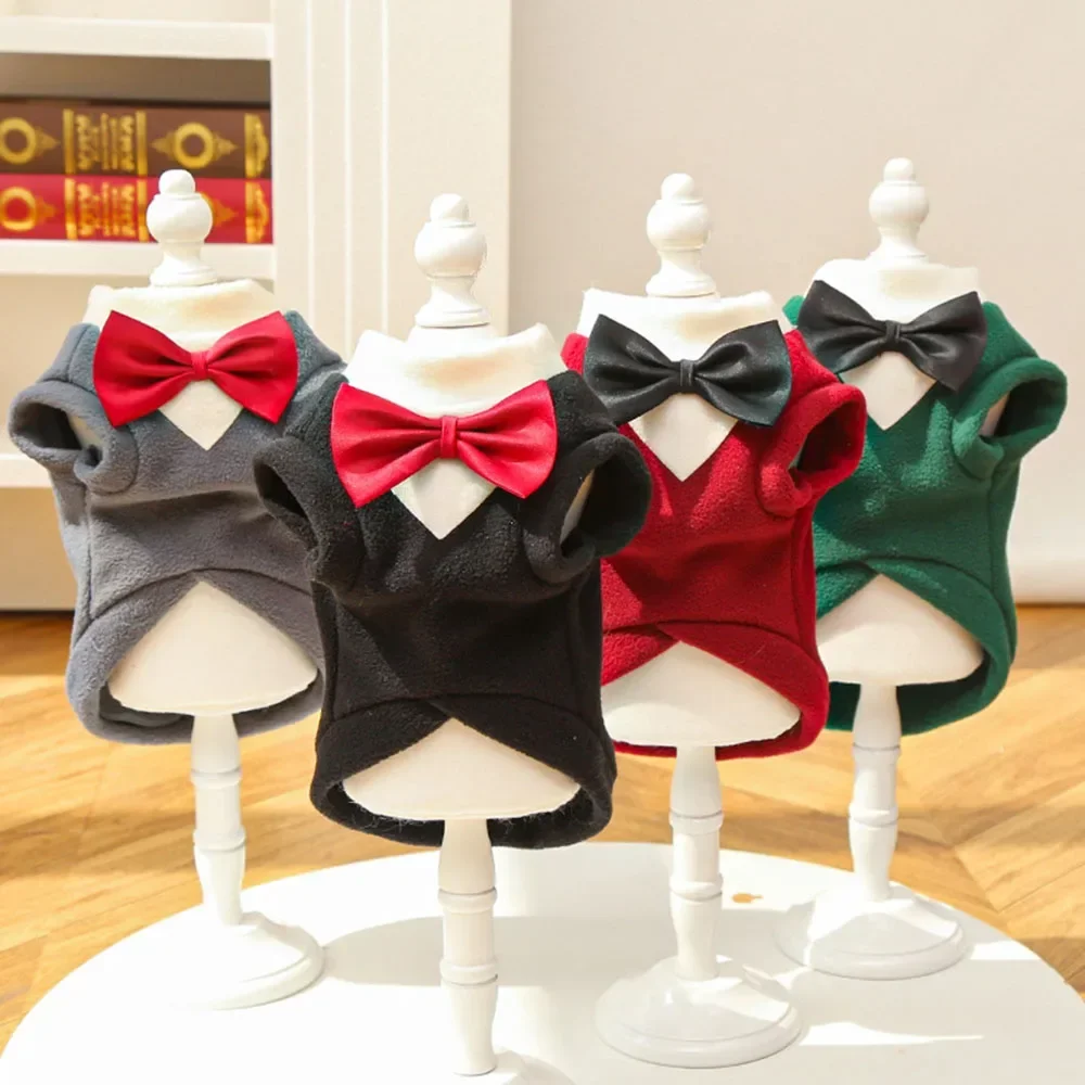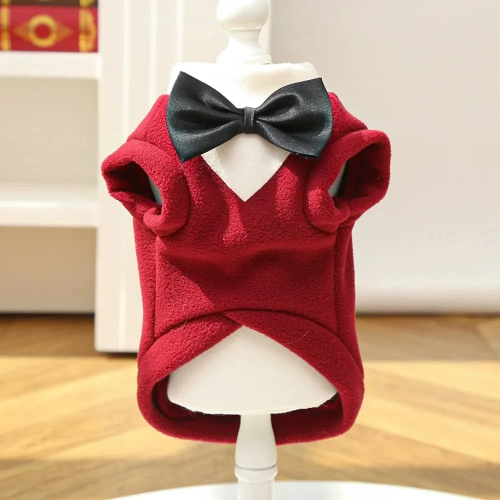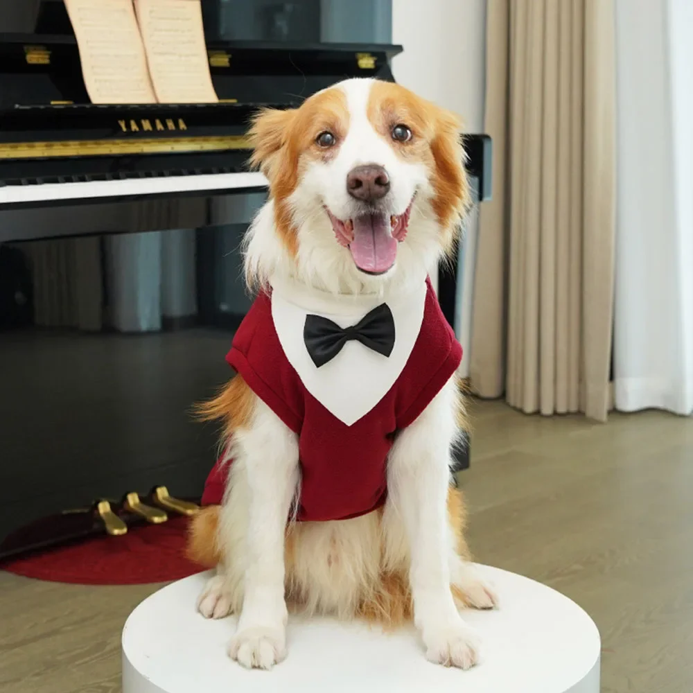 Winter Dog Fleece Costumes Sweatshirt Dogs Tuxedo Wedding Party Suit Prince Bow Tie Shirt Formal Pet Wedding Attire for Big Dogs